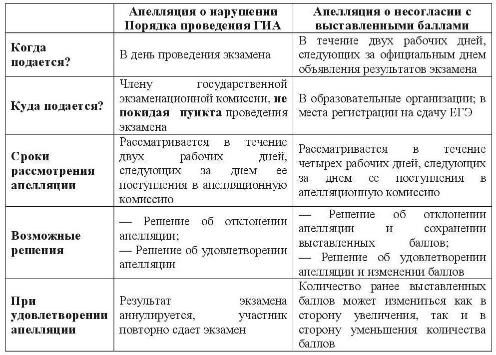 - о несогласии с выставленными баллами в течение одного рабочего дня, следующего за днем подачи указанной апелляции, но не позднее дня заседания апелляционной комиссии.